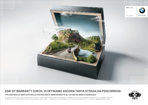 Questa è l’idea alla base della campagna stampa e web realizzata da Bcube per la nascita di “End of Warranty Check”, il nuovo servizio offerto da BMW Motorrad Service: un controllo gratuito per tutti i clienti BMW Motorrad che vedono avvicinarsi la scadenza della garanzia della propria moto.
