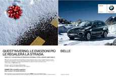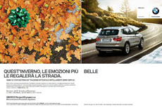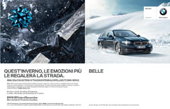 In II di copertina e I romana è stato pianificato un soggetto teaser, composto da una texture di neve solcata dai segni del battistrada, le tre doppie interne affiancano a neve, foglie e ghiaccio un modello BMW. In chiusura della rivista, la 3a e la 4a di copertina sono dedicate al solo prodotto. La stessa creatività verrà declinata in affissione, banner e per la personalizzazione dei tornelli all’interno delle stazioni sciistiche di Cortina, Plan de Corones, Alta Badia, Gardena, Fassa, Arabba, Pusteria, Fiemme, S. Martino, Valle Isarco, Tre Valli, Civetta. Post produzione: Studio Ros. Centro Media: Carat.