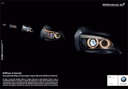 La visione rappresentata nell’annuncio stampa, e veicolata anche da un radiocomunicato a 30", è quella che lega BMW alle aziende che selezionano la flotta delle loro automobili all’interno della sua gamma. Negli scatti di Roberto Carrer, infatti, i fari-occhi di alcuni modelli BMW puntano uno sguardo diretto e deciso in avanti, a simboleggiare l’avanguardia e la ricerca di innovazione di cui l’azienda bavarese è da sempre sinonimo. Chi sceglie le auto BMW per il proprio parco auto, quindi, non solo ricerca la premiumness e la qualità di BMW ma ne sposa la filosofia aziendale, orientata tanto alla costante ricerca delle massime prestazioni quanto alla tutela dell’ambiente.