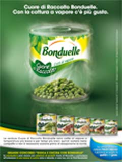 Bonduelle, specializzato nelle conserve vegetali, lancia una nuova campagna stampa ideata dall’agenzia pubblicitaria Red Cell, con pianificazione media a cura di Zenith Optimedia, contraddistinta da una creatività impattante e chiara. Oggetto della comunicazione - che verrà veicolata da ottobre 2011 a gennaio 2012 sulle principali testate consumer periodiche nazionali - sarà Cuore di Raccolto, la nuova gamma di verdure monovarietà in conserva, cotte al vapore a temperature più basse e per tempi più brevi, tecnica che consente di preservare al meglio le qualità e il gusto delle verdure.Il layout della nuova campagna è composto da un visual incisivo - che ritrae una lattina di piselli avvolti in una nuvola di vapore che li cuoce dolcemente - e una headline diretta ed efficace: Cuore di Raccolto Bonduelle. Con la cottura a vapore c’è più gusto. Anche la body copy punta alla chiarezza, descrivendo in maniera sintetica i plus della cottura al vapore, mentre un flash di colore azzurro nell’angolo in basso a destra mette in evidenza un ulteriore vantaggio della linea: la quasi totale assenza di liquido di governo che rende il prodotto immediatamente utilizzabile, senza bisogno di scolarlo.