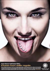 Un'irriverenza forte, quasi estrema, che Cernuto Pizzigoni & Partners ha sintetizzato conil volto di una raffinata modella nell'atto di mostrare una linguaccia, con cinque luccicanti stelle come piercing.