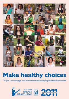 Lavorando sul concetto del “mosaico di scelte sane” è possibile caricare la propria foto su www.breasthealthday.org/makehealthychoices per andare a comporre un colorato invito ad adottare stili di vita sani. Il collage di volti andrà a comporre la scritta “BHD 2011” che diventerà l’ultimo frame del video che sarà pubblicato il 15 ottobre.