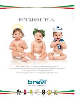 L’azienda specializzata in prodotti per la prima infanzia partecipa all'evento con un annuncio dedicato a tutti i 'Fratellini d’Italia'.Un angioletto, un piccolo con la corona d’alloro e un marinaretto sbarazzino sono i testimonial della campagna. La simpatica rivisitazione dei 'santi, poeti e navigatori di domani', legata alla head 'Fratellini d’Italia', vuole essere un omaggio ai piccoli.