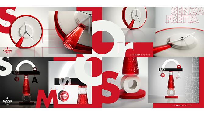 Infine, un orologio #SenzaFretta è stato ciò che Matteo Agati (designer e consulente creativo) ha ideato per la collezione. Lo speciale oggetto, così indispensabile per la nostra quotidianità, non segna le ore della giornata, non dà loro importanza, ad eccezione fatta per quella dell’aperitivo (l’ora senza fretta per eccellenza), evidenziata da una bottiglietta di Campari Soda. Un modo unico e divertente per fermare il tempo per un attimo e far scivolare via tutti i pensieri.