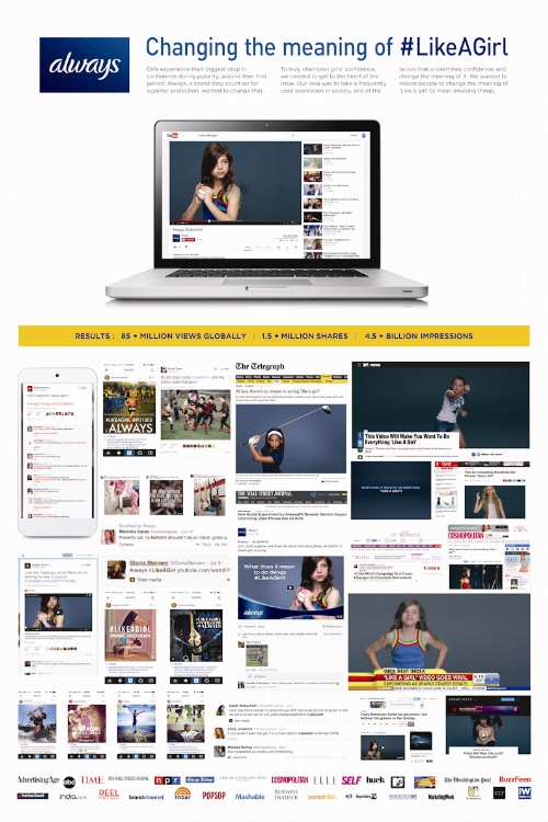 Data questa premessa, ha quindi sottolineato la presidente della giuria, “La cosa più importante è che il gap creativo fra le agenzie di RP e le altre, media, digitali o creative che siano, è ormai stato colmato. Lo testimonia perfettamente il Grand Prix assegnato a Always ‘Like a girl’, co-firmato da MLS Group New York e Leo Burnett Toronto, che rispondeva perfettamente ai criteri che avevamo stabilito inizialmente dovesse avere il massimo riconoscimento: un’idea fortemente creative trasformata in una soluzione geniale; in cui un ruolo guida e un apporto determinante fossero attribuibili alle relazioni pubbliche; risultati misurabili in termini di cambiamento dei comportamenti, delle conversazioni e del business del brand. ‘Like a girl’ è e fa tutto ciò sposando il ‘purpose’ e i valori del brand, amplificando attraverso i social media l’importanza dell’autostima per le donne fin dall’adolescenza, e parlando attraverso i social media davvero a tutti”.