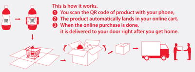 nella classifica dei maggiori lavoratori al mondo e hanno poco tempo per lo shopping), unite dall’idea davvero unica di riprodurre sui muri delle stazioni del metro i banchi di un supermercato: un display iper-realistico, in cui ogni prodotto è affiancato da un QRcode, e in cui basta puntare e cliccare con il cellulare per aggiungere il prodotto desiderato al proprio carrello virtuale. Una volta chiusa la shopping list, l’acquisto si effettua direttamente online e in pochissimo tempo si riceve la spesa a casa propria.