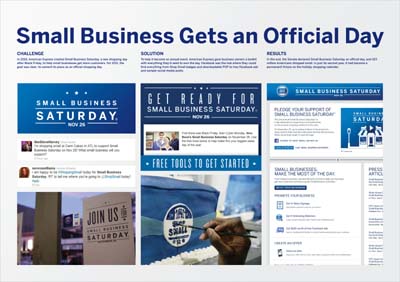 Il Grand Prix è stato assegnato agli Usa per la campagna 'Small business gets an official day' di Crispin Porter & Bogusky Boulder/Digitas New York per American Express che, ricordiamo, si è aggiudicata il massimo riconoscimento anche nella sezione Direct. Si tratta di un importante progetto integrato ideato per sostenere i cosiddetti small business, ovvero i negozi di prossimità. Anche in questo caso una campagna che va dunque ben oltre l'obiettivo di accrescere gli utilizzatori della carta di credito American Express per sposare un obiettivo considerato prioritario anche dal presidente Usa Barack Obama."'Small business gets an official day' è stata riconosciuta da tutti una bellissima iniziativa - ha affermato il presidente di giuria - , caratterizzata da una forte componente social che si è integrata in modo efficace nel core concept del progetto".