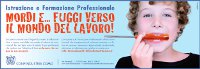 Con un tone of voice leggero è stato ripreso un ragazzo nell’atto di esprimere la sua aspirazione professionale, sicuro di trovare una risposta qualificata nell’ampia offerta formativa di indirizzi scolastici: meccanica, legno-arredo, tessile-moda, elettronica ed elettrotecnica, grafica e cartotecnica. “Mordi e… fuggi vero il mondo del lavoro!” è la promessa dell’head line che conferma la caratteristica di preparazione pratica e di prospettive concrete per uno sbocco lavorativo immediato.