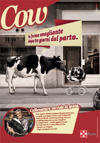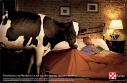L’azienda Cargill, multinazionale specializzata in prodotti e servizi alimentari, comunica in grande stile il lancio del nuovo Purina Metitech: un nutrimento per le vacche da latte durante il periodo di transizione (a cavallo del parto). Questa fase, infatti, rappresenta un momento molto delicato sia per l’animale che per l’allevatore, perché le vacche da latte riducono l’appetito e possono incorrere in malattie metaboliche come la chetosi, diminuendo la produzione di latte e rischiando di essere riformate. Il concetto creativo alla base della campagna curata dall’agenzia DLV BBDO esaspera il senso di maternità nel periodo di transizione con due stampe ironiche e dirompenti. Nella prima immagine si vede un allevatore nella sua camera da letto mentre una tenera bovina gli rimbocca le coperte, mentre nella seconda l’animale è immortalato da una rivista di gossip, a testimoniare la sua forma smagliante dopo il parto.
