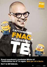 Si tratta di una campagna dedicata esclusivamente ai soci che ha come protagonisti i personaggi del cartoon, in particolare i Minions, i divertenti e catastrofici esserini gialli molto amati dal pubblico. La campagna è volta a sostenere la nuova promozione di Fnac legata al lancio del dvd/blu-ray del film d'animazione. A supporto l'insegna ha previsto attività di comunicazione in-store e attraverso la newsletter rivolta ai soci.