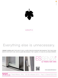 I dettagli ci rendono unici. Ne è fortemente convinto il brand Essenza che sceglie di fare la differenza puntando sui particolari (innovativi) e regalando agli architetti e ai clienti ancora più vetro: tante le novità firmate Essenza che rivoluzioneranno il mondo dei serramenti e che verranno presentate ufficialmente a Milano in occasione del Made 2013, il salone internazionale dell’edilizia e dell’architettura. In vista dell’evento è stata realizzata una campagna di lancio destinata alle principali riviste di settore. La creatività è stata affidata a Catullo & Sylwan che ha voluto incentrare tutta la comunicazione proprio sui dettagli che ci distinguono dagli altri. Prendendo in prestito il neo di Marilyn Monroe, i baffi di Salvador Dalí e altri elementi 'famosi', l’agenzia ha dato vita a una campagna multi-soggetto incisiva, in cui il dettaglio è protagonista, la grafica è essenziale e la headline è esplicita: 'Everything else is