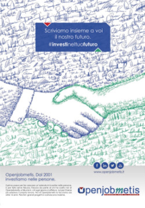 Le firme che compongono l’immagine rappresentano simbolicamente le persone che hanno scelto ed investito in Openjobmetis, mentre l’immagine iconica e rievocativa traduce l’ideale incontro e stretta di mano tra chi offre e chi cerca lavoro.