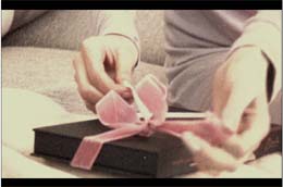 La donna lo prende in mano incuriosita, lo avvicina all’orecchio, lo scuote, cercando di indovinarne il contenuto. Lo avvicina al volto cercando di coglierne un eventuale profumo. Con entrambe le mani ne tasta la consistenza, ancora una volta cercando di indovinare cosa sia. Quindi si vede il cofanetto che viene scartato rapidamente. 'Fai un regalo che non potrà indovinare' dice lo speaker mentre lei lo apre.