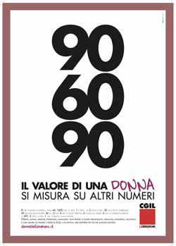 La campagna CGIL Lombadia prevede una campagna outdoor, protagonista nelle piazze dei principali comuni lombardi, con 12 totem specchianti con le misure 90-60-90 e lo slogan 'I valore di una donna si misura su altri numeri'. Prima tappa, Milano, dal 14 febbraio al 18 marzo nelle stazioni milanesi (Cadorna, Garibaldi, Greco-Pirelli e Bovisa); successivamente, tra i mesi di marzo e aprile, la campagna viaggerà attraverso le città della Lombardia. Altre azioni virali di diffusione della campagna animeranno la città in angoli impensati. A Milano, dal 14 al 28 febbraio, sarà inoltre proiettato sugli schermi di diverse stazione metropolitane il manifesto della campagna.