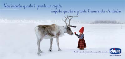 E’ partita ai primi di dicembre su affissione e sul web la campagna Chicco per gli auguri di Natale 2010. Il messaggio della campagna, realizzata da McCann Erickson, rimanda ad un mondo fatato, fatto di atmosfere magiche e dai contenuti fiabeschi.