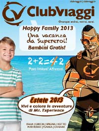 2+2=2, così Clubviaggi, brand di Uvet ITN Travel Network, rilancia per il 2013 Happy Family, la promozione a target famiglia, in collaborazione con i consolidati Tour Operator partner del Network, che prevede la gratuità garantita fino a due bambini per ogni nucleo famigliare. Come per l’edizione 2012, Happy Family 2013 sarà sostenuta da un’ intensa campagna pubblicitaria alla quale è stato destinato un budget ancora più importante rispetto all’anno precedente.