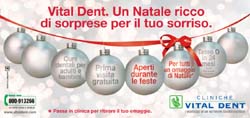 L’agenzia ha ideato e realizzato per il cliente la nuova campagna, che come recita l’head, annuncia un Natale ricco di sorprese. I centri Vital Dent, infatti, resteranno aperti per tutto il periodo delle vacanze e i pazienti che si recheranno nella clinica più vicina potranno ritirare un omaggio natalizio. Inoltre, la prima visita, la radiografia e la valutazione specialistica sono sempre gratuite.