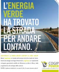 Il titolo della campagna: 'L’energia verde ha trovato la strada per andare lontano' ribadisce e valorizza l’appartenenza di CogiPower a un gruppo che da tempo è un importante player, con Cogip Infrastrutture, nel settore delle grandi opere.