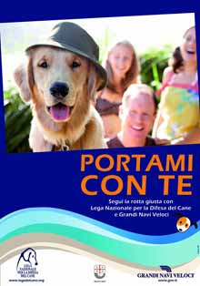 Con il patrocinio dell’Assessorato al Turismo della Regione Liguria, al via la campagna di sensibilizzazione contro l’abbandono dei cani. La Lega Nazionale per la Difesa del Cane ha scelto come partner la compagnia marittima, poichè dallo scorso anno, attraverso ingenti investimenti ha dotato parte della sua flotta di un servizio studiato per gli amici a quattrozampe.