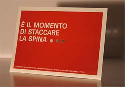 Il tema della Promocard, realizzata da Manfredi Marino (art) e Ugo Berretta (copy), rappresenta un invito a risparmiare energia 'staccando la spina'.