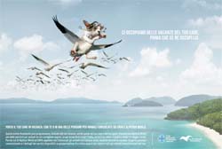 Per il lancio di questi nuovi servizi, Saatchi & Saatchi ha ideato un annuncio stampa ironico e surreale nel quale un cane parte per le vacanze a cavallo di un’oca. L’invito è quello di non abbandonare il proprio animale domestico e organizzare le sue ferie, prima che possa farlo lui con esiti imprevedibili.