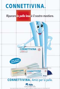 Connettivina è un cicatrizzante con molte valenze, come sottolinea il pay off: Connettivina. Amici per la pelle. I Connettivini formano una squadra efficiente ed efficace che in poche mosse rigenera la pelle danneggiata da escoriazioni e irritazioni. Il personaggio dalle linee sinuose, lo sguardo dolce e ammiccante, l’incedere da bravo robottino è nato dalle penna di Marina Dovico, art director della divisione Well Adv. La campagna è on air da maggio per tutta l’estate su quotidiani, settimanali e mensili, e da giugno sulle principali reti tv.