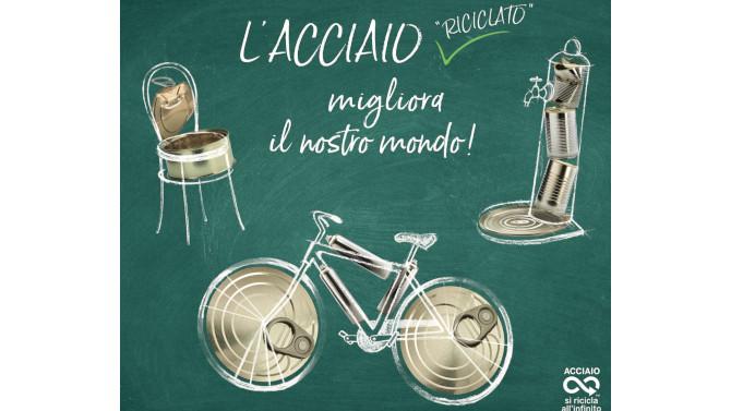 La campagna è sviluppata da Area ADV e pianificata su Rai da Black & White Comunicazione, e realizzata in collaborazione con Anfima, l’Associazione nazionale italiana dei Fabbricanti di Imballaggi Metallici e affini e con il patrocinio di ANCI (Associazione Nazionale Comuni Italiani). Protagonista è l’economia circolare: un modello virtuoso in cui barattoli, scatole, scatolette, lattine, fusti, secchielli, bombolette, tappi e chiusure in acciaio, se riciclati correttamente, possono tornare a nuova vita sotto forma di biciclette, panchine d’arredo urbano, binari, fontanelle, tombini, ma anche bulloni, chiodi, chiavi inglesi e molto altro ancora. L’acciaio infatti è un materiale permanente che si ricicla al 100% e all’infinito senza perdere le proprie qualità intrinseche.