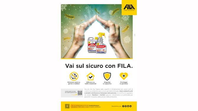 La necessità di Fila di presentare due nuovi prodotti per l'igienizzazione delle superfici ha incontrato la risposta di Coo’ee in una campagna di comunicazione rivolta al consumer. Il concept ruota attorno al concetto di protezione da sporco, germi e batteri, grazie all’efficacia dei nuovi detergenti igienizzanti Rapidsan e Sanifast. L’headline a supporto «Vai sul sicuro con FILA» aggancia il visual e chiude la comunicazione con una body copy informativa. La fase iniziale della pianificazione media prevede l’uscita su stampa nazionale e sul web attraverso una campagna digital.