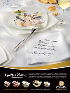 Una tavola allestita con gusto raffinato, un sapore prelibato evocato dalle alici marinate Ricette d’Autore e una firma d’eccellezza siglano la prima campagna stampa di Copaim, azienda toscana specializzata nella produzione di gastronomia fresca ittica e vegetale. Il soggetto creativo, ideato da Ineditha, esalta il rispetto della tradizione culinaria italiana e i plus di unicità e alta qualità che distinguono Ricette d’Autore, consumer brand dell’azienda che da sempre coniuga il gusto tipico italiano con le migliori tecniche innovative. Il soggetto di campagna è rappresentativo di tale eccellenza: le alici di Copaim sono infatti pescate nel Mare Adriatico e quindi 100% italiane, un’ulteriore garanzia di sicurezza e qualità per il consumatore. L’adv trova il suo climax nella dedica lasciata dal giornalista ed esponente della letteratura italiana Giampiero Mughini - i complimenti all’autore dall’autore -, eco al mito di Picasso, che si racconta fosse solito autografare il suo apprezzamento culinario direttamente sullatovaglia delle locande che prediligeva. La firma si trova qui sul tovagliolo come riconoscimento agli alti valori dell’azienda e alla gamma di prodotti pensati per consumatori esigenti.