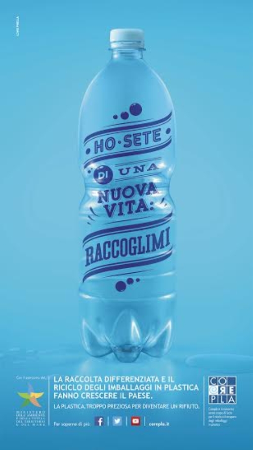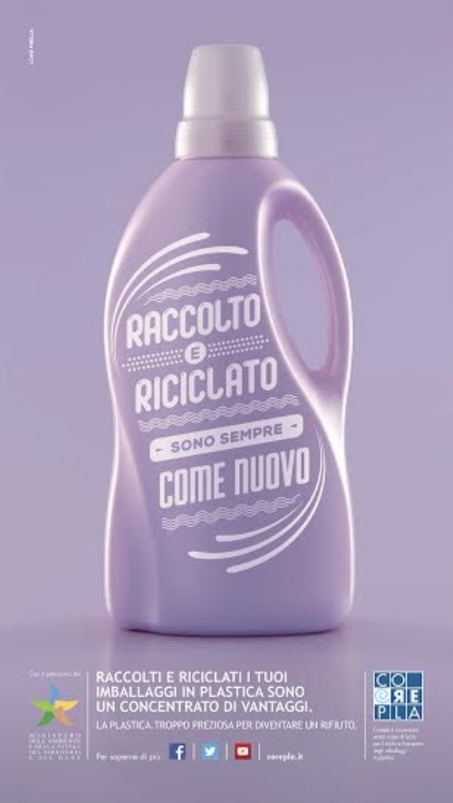 Il consorzio nazionale per il riciclo e il recupero degli imballaggi in plastica, a partire dal 18 ottobre, andrà in onda con 3 nuovi soggetti stampa e affissione,due nuovi spot per la Tv e una nuova campagna digital che sosterranno in maniera particolare la raccolta differenziata. Hanno lavorato ai nuovi soggetti di campagna i creativi Davide Pasquale e Ferdinando Galletti. Le foto sono state eseguite da Fulvio Bonavia, mentre la parte grafica è a cura di Nicolò 'Ottogoodz' Ottoboni.