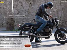 Piaggio, reinterpreta l’estetica della motocicletta in chiave italiana, valorizzando l’heritage di Moto Guzzi e l’unicità del brand: l’universo motoristico café racer, legato a un immaginario vintage e conservativo, incontra il contemporaneo, attento a fashion e consumer experience. Nasce una campagna stampa e web europea in cui la mitica Guzzi V7, nelle sue versioni Racer, Stone e Special, si conferma come vera e propria icona.