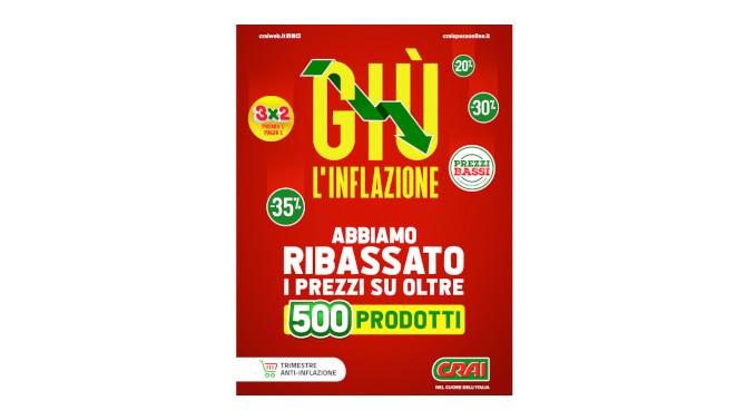 In concomitanza con l’avvio del trimestre anti-inflazione, Crai ha lanciato l’iniziativa “Giù l’inflazione” con cui ribasserà i prezzi di oltre 500 prodotti (sia a marchio Crai sia di brand nazionali) dal -10% fino al -40%.