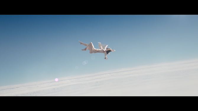 Una donna dice 'seguimi' e, mentre affonda il cucchiaino nello yogurt, si lancia nel vuoto, a 12 mila metri di altezza. Attraversa una coltre di nuvole bianche per poi essere illuminata da un grande sole rosso, e precipitando va in estasi.