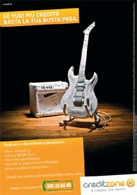 E’ ripartita la campagna radio ideata da Cayenne per Creditzone, brand specializzato nella Cessione del Quinto e nato dalla fusione di Saro e Kema, esperti del credito al consumo.La strategia proposta da Cayenne, come per la campagna stampa uscita a settembre ( un soggetto nella foto), fa leva sulla caratteristica distintiva del marchio: la semplicità di concedersi da soli il credito, avendo a disposizione la propria busta paga.