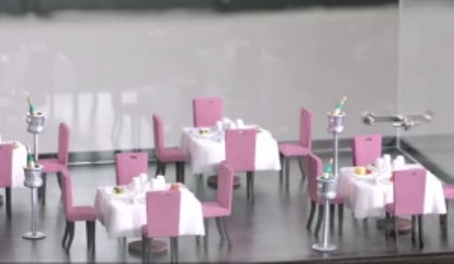 Il perché non c’è neanche bisogno di spiegarlo. Per questo insieme a Leo Burnett ha aperto “La Mouche D’Or” il primo ristorante gourmet al mondo per mosche. Un ristorante raffinato, esclusivo, di gran classe, con 16 coperti. Immaginate tavoli da 6 cm apparecchiati con cura ed eleganza, con tanto di posate di argento e bottiglie di champagne, sedie dipinte a mano di 5 cm e piatti da 2 cm.