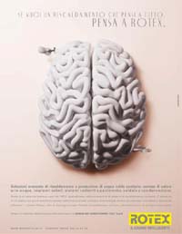 "Se vuoi un riscaldamento che pensi a tutto, pensa a Rotex". E' questa la headline della campagna Rotex, il marchio della divisione riscaldamento di Daikin Italy. Il lancio della campagna, realizzata dall'agenzia Armando Testa, è stato pianificato da dicembre a marzo su alcune testate e siti web specializzati nei settori clima, impianti e architettura, e sulla rivista di Legambiente, La nuova ecologia. L'investimento complessivo per la creatività e la pianificazione supera i centomila euro."Dato che la linea di sistemi Rotex è caratterizzata da una tecnologia unica e altamente innovativa, avevamo l'esigenza di differenziare fortemente la nostra comunicazione. Per questo abbiamo fatto una scelta coraggiosa e inusuale per il panorama pubblicitario del riscaldamento, solitamente legato a immagini di benessere e natura, e quindi a una comunicazione aspirazionale oppure a immagini di prodotto che si traducono in messaggi più razionali?, dice Marco D'Antona, responsabile comunicazione di Daikin Italy. "Con il termosifone a forma di cervello abbiamo proposto un'immagine diversa e di grande impatto che coniuga l'elemento tradizionalmente associato al riscaldamento al simbolo dell'intelligenza per antonomasia".