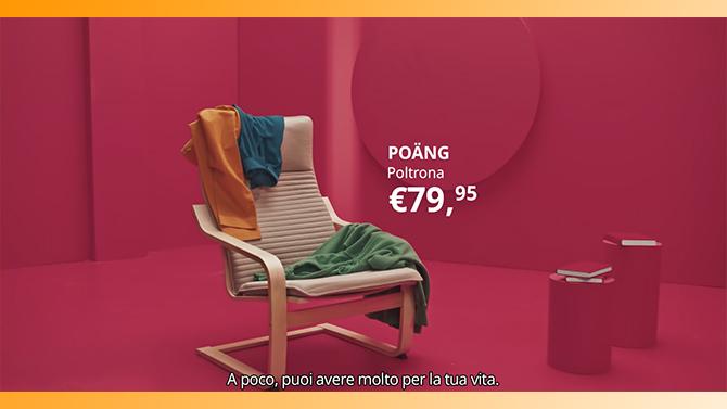 E così l’iconica poltrona POÄNG si trasforma in una “navicella che ti dondola fino al pianeta relax” oppure la scrivania LILLÅSEN diventa un “sentiero in puro bambù che ti porta verso un futuro più green”, fino al famoso scaffale componibile EKET che diventa “un jolly da giocare ovunque vuoi per vincere sul caos”. Perché un prodotto IKEA non è mai soltanto un prodotto.