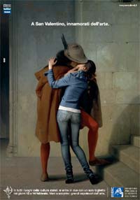 Il messaggio della campagna è l’amore e l’invito a festeggiare San Valentino in un modo diverso. Un messaggio che viene reso in modo molto diretto dalla campagna che gioca con il famoso quadro di Hayez 'Bacio' nel quale però la giovane amante del dipinto è sostituita da una ragazza dei nostri tempi. La head della campagna è appunto: 'A San Valentino, innamorati dell’arte'. Anche il comunicato radio sfrutta lo stesso concetto presentando situazioni in cui persone reali festeggiano San Valentino con celebri opere d’arte.
