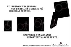 E’ partita in questi giorni la nuova campagna di sensibilizzazione sugli uguali diritti dei disabili promossa dal Ministro per la Pari Opportunità, e realizzata dal Gruppo DDB, a cui è stato assegnato l'incarico.Sviluppata con un approccio olistico che prevede i mezzi classici, come la televisione, la stampa, la radio e le affissioni, ma anche il Web e differenti attività sul territorio, la campagna prende spunto dall’icona grafica dell’omino in carrozzina, simbolo universalmente riconosciuto di disabilità.