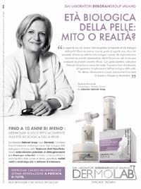 Testimonial della comunicazione, firmata Ticia Arigo Adv, la dottoressa responsabile dei laboratori Deborah Group che pone un interessante quesito: 'Età biologica della pelle, mito o realtà?'.