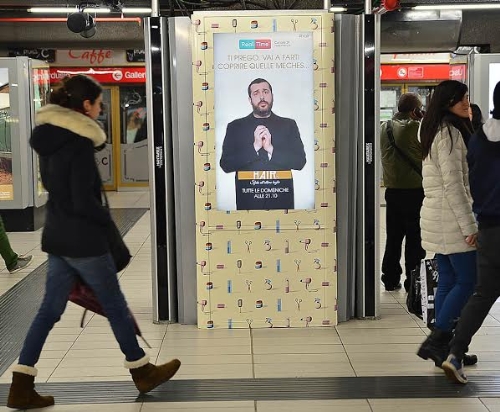 “Hair - Sfida all’ultimo taglio”, il primo talent show italiano dedicato interamente al mondo dell’hairstyling e ai tagli di capelli in onda in prima serata ogni domenica alle 21:10 su Real Time, irrompe nella metropolitana di Milano. Il format di comunicazione ideato da Kinetic e IGPDecaux Innovate - si fa riconoscere sugli schermi LCD per la prima volta totalmente brandizzati non solo grazie alla presenza e lo sguardo ammiccante di Costantino della Gherardesca, conduttore del programma, che domina in esclusiva il loop immagini, ma anche grazie all’introduzione del sonoro attivato da un sensore di presenza che attira l’attenzione dei passanti.