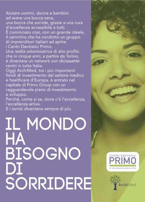 Il fondo di investimento internazionale nel settore medico e nell’healthcare, ha scelto di entrare a far parte del capitale della holding che controlla i Centri Dentistici Primo, con un investimento che permetterà di accelerare il suo piano di espansione a livello nazionale. Alla campagna hanno lavorato, sotto la direzione creativa copy di Paola Napolitani, l’art director Carolina Ramirez. L' account è Luana Dimonte.