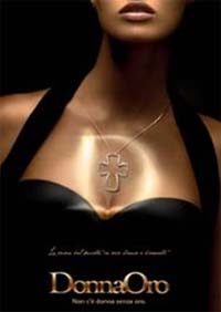 Nello spot la mano raffinata della donna porta l’attenzione sul gioiello indossato, quasi ad unire visivamente il proprio io al prezioso DonnaOro. Un gesto lento, delicato, per siglare il legame esclusivo fra sé e l’oro perché, come recita la voce dello speaker, Non c’è Donna senza Oro. Una donna misteriosa, di cui si intravedono solo le linee morbide del collo e del décolleté che accoglie la luce del pendente indossato.