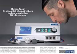 Il claim sviluppato da Cernuto Pizzigoni & Partners 'Human Tecar. Ci sono atleti che potrebbero dedicarle un trofeo. Altri la carriera' é sviluppato attraverso la testimonianza di grandi campioni dello sport professionistico che riconoscono l’efficacia di Human Tecar. Il primo protagonista della campagna pubblicitaria è proprio Marco Materazzi che nel visual, con un bacio all’apparecchiatura, esprime tutta la sua riconoscenza per i benefici ottenuti dalla Tecarterapia.