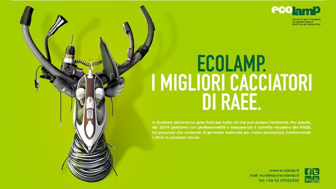 Il concept si concentra sulla comprovata esperienza e competenza di Ecolamp che dal 2004 gestisce, con professionalità e trasparenza, la raccolta di rifiuti di apparecchiature elettriche ed elettroniche giunte a fine vita, per trasformarle in nuove preziose risorse. Per enfatizzare questo concetto, il soggetto della campagna gioca con il tema della caccia e della vittoria, assegnando così al Consorzio per il Recupero di Apparecchiature Elettriche ed Elettroniche Ecolamp, il titolo di "Migliori cacciatori di RAEE".