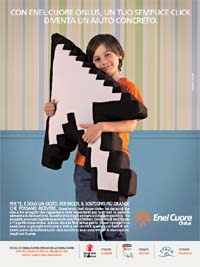 La Onlus presenta un’iniziativa per sostenere tre differenti progetti di carattere sociale. Si tratta di un'operazione di 'click raising' in cui chiede agli utenti di votare per il progetto e l’associazione a cui tengono di più, con un click sul minisito di www.enelcuore.org/scegliconilcuore. La campagna a sostegno è stata realizzata sotto la direzione creativa di Agostino Toscana e Alessandro Orlandi.