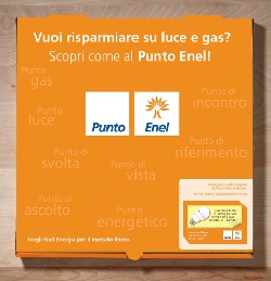 Con queste scatole si inviteranno i consumatori di pizza a visitare il Punto Enel più vicino che partecipa all’iniziativa, per scoprire tutti i vantaggi che Enel Energia offre ai propri
