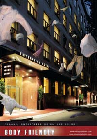 Enterprise Hotel ha scelto di giocare sulle leve dell'ironia e della seduzione, ideando una campagna pubblicitaria d'avanguardia, articolata in due soggetti. Il primo racconta, con uno stile che richiama volutamente il mondo cinematografico come fosse un fotogramma di un film, cosa accade fuori dall'hotel: qui i protagonisti sono i pigiami che volano dalle finestre dell'Enterprise Hotel, in un'atmosfera 'sospesa', che crea sospetti e lascia suspance su quanto accada all'interno dell'hotel.