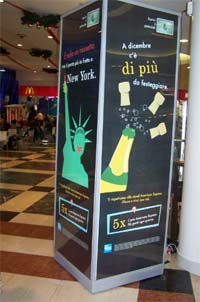 - Lumen (impianti girevoli quadrifacciali retroilluminati), per completare la diffusione della campagna e accrescere la domination di American Express.