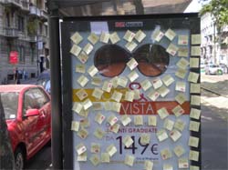 Dal Duomo ai Navigli, da Cadorna alla Bocconi, da Corso Sempione alla Bicocca. Oltre 300 gli autobus milanesi che sono diventati 'odierni cupidi' della coppia con affissioni dinamiche dei loro post-it. I due amanti si scambiano messaggi d’amore fino a quando non decidono di incontrarsi. Data e luogo dell’appuntamento, il 26 maggio alla Maison Moschino, e finalmente viene svelato il loro mistero: Lui è Ethos Profumerie e Lei rappresenta tutte le clienti, che vengono ogni giorno 'amate' e coccolate da Ethos Profumerie.